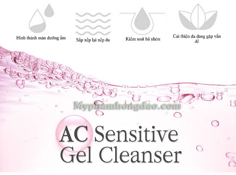 Sữa rữa mặt PH(5.5) cân bằng AC Sensitive Gel Gleanser – sử dụng cho mọi loại da đặc biệt dành cho da mụn, nhạy cảm: làm sạch bụi bẩn, không làm hư lớp màng bảo vể da ngược lại giúp tái tạo lớp màng bảo vệ da tối đa. Giúp làm dịu nhẹ làn da giảm mụn, kích ứng, da láng mịn, sáng khỏe hơn mỗi ngày.